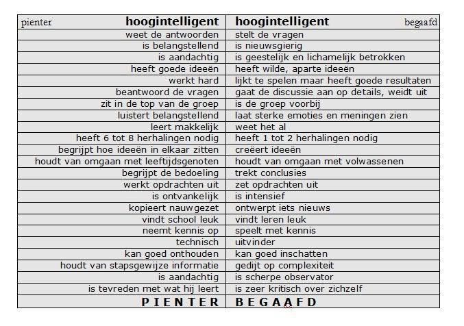 Verschil tussen Pieter en Begaafd